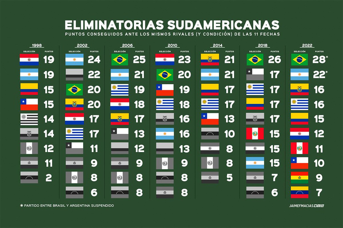 Estadísticas goleadores resultados y agenda de la triple fecha rumbo a qatar 2022. For an overview of the qualification rounds see the article 2002 FIFA World Cup qualification. Posiciones de las eliminatorias sudamericanas en vivo.